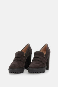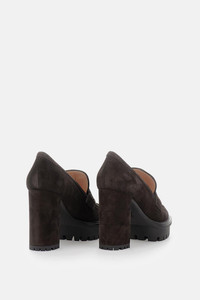 High-heeled moccasin in suede leather with platform and rubber sole. Moka color. Details and Care Color: Marrone Composition: 100 % CALF Suede Made in: Italia Sku: G2535770RICSUEMOKA