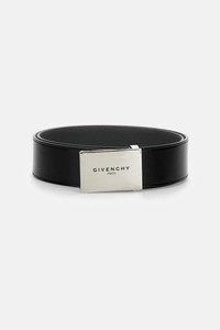 Box leather belt. Label line. Gold-finish metal buckle with GIVENCHY Paris signature. Adjustable to wear it in a classic way or at the waist. Details and Care Color: Nero Composition: 100% LEATHER Made in: Italia Sku: BK407NK21Q002