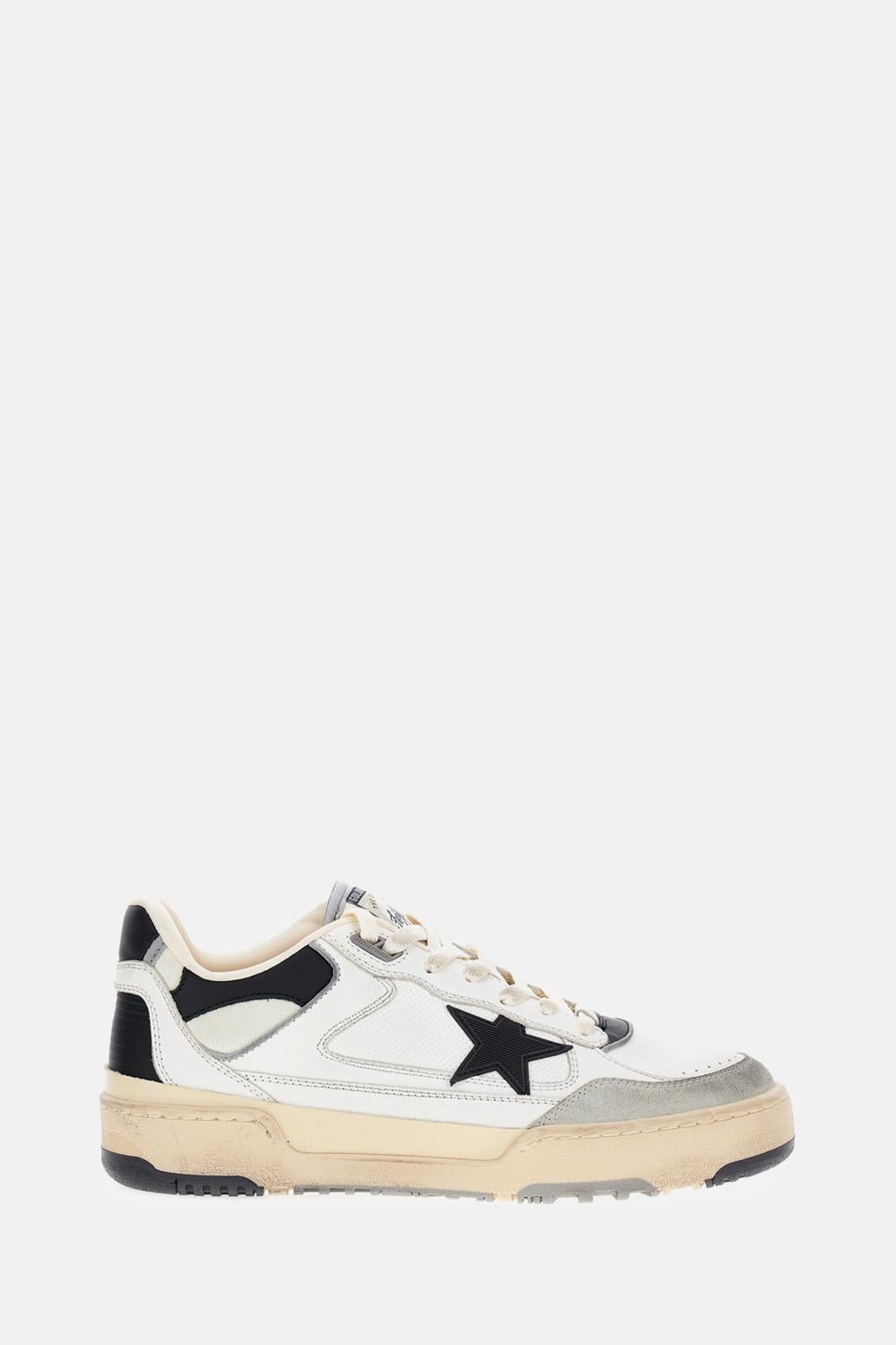 Women's buffalo leather sneakers with vintage effect, star detail, gold logo, rubber sole. Made in Italy, Color: white and black Care and details Color: White Composition: 15% PL 1% PU84% COW LEATHER Made in: Italia Code: GMF00630F00574511395