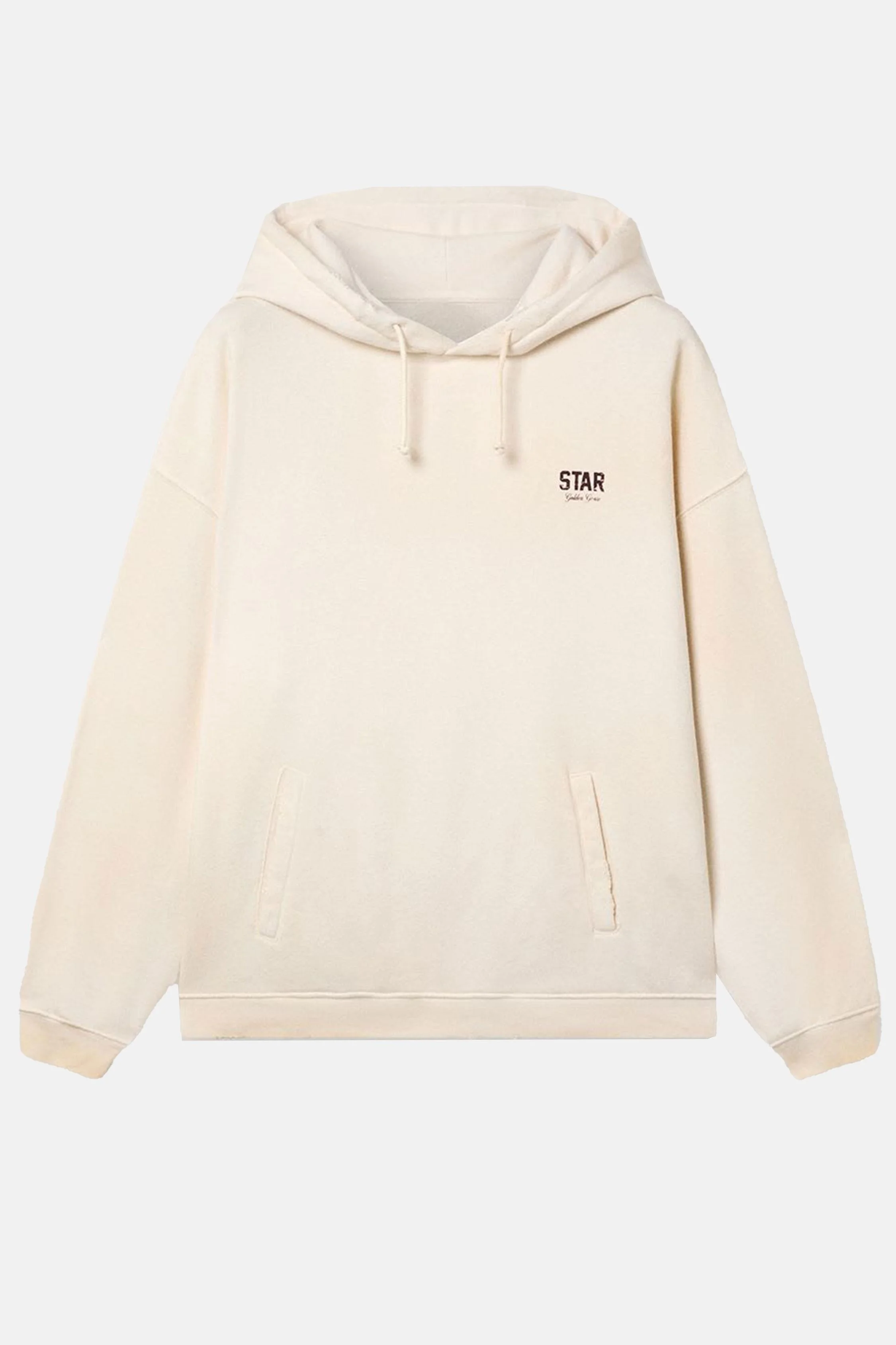 Hooded sweatshirt with drawstring Aged finish Welt pockets, logo print on the chest. Ivory white color Details and Care Color: White Composition: 100% cotton Made in: Italia Sku: GUP02712P00241511616