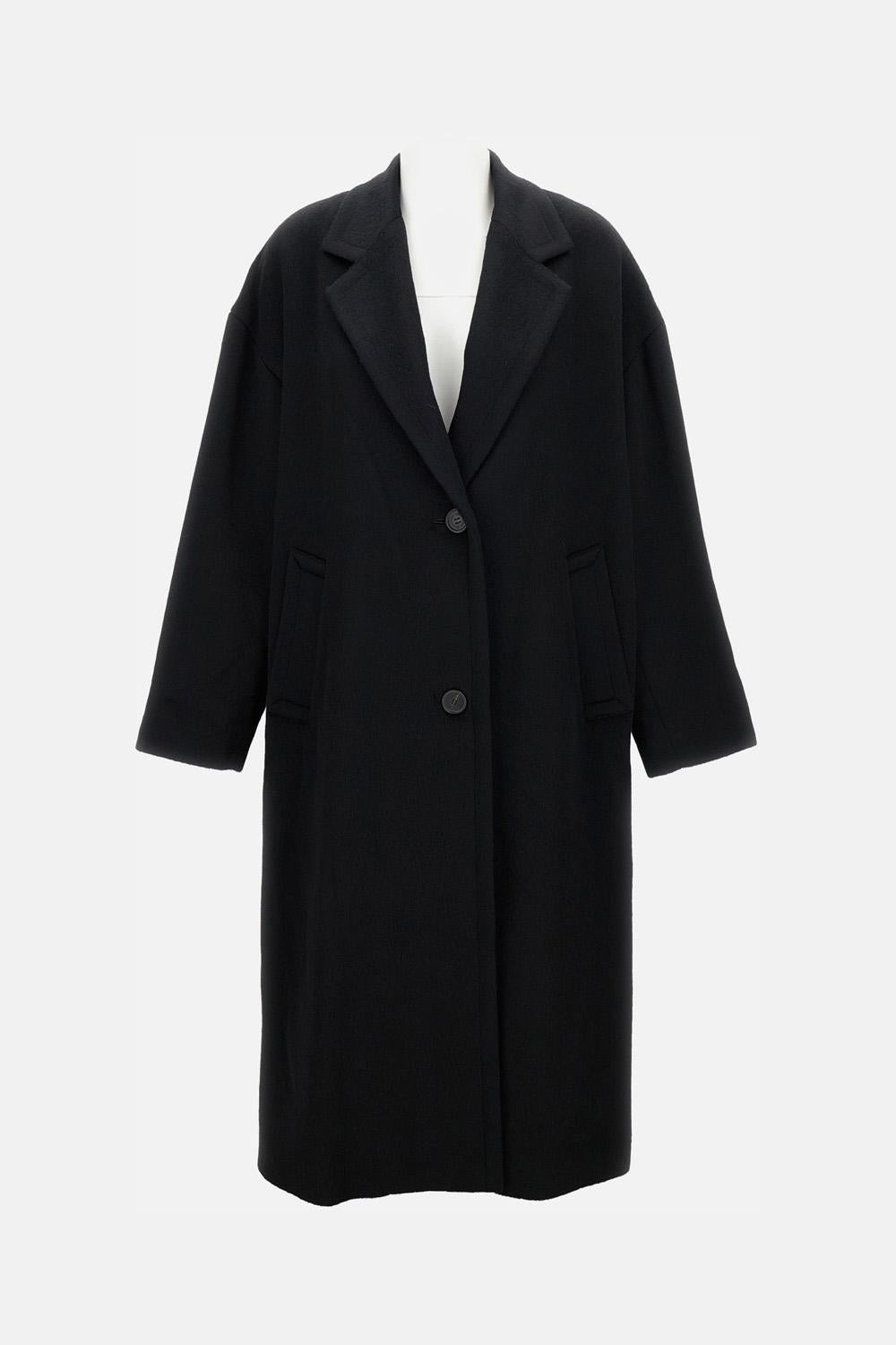 Single-breasted black wool coat, two-button closure, two front pockets, star embellishment on the back. Relaxed fit, made in Italy. Details and Care Color: Nero Composition: 50% WO 35% WM 15% PA Made in: Italia Sku: GWP02275P00197390100