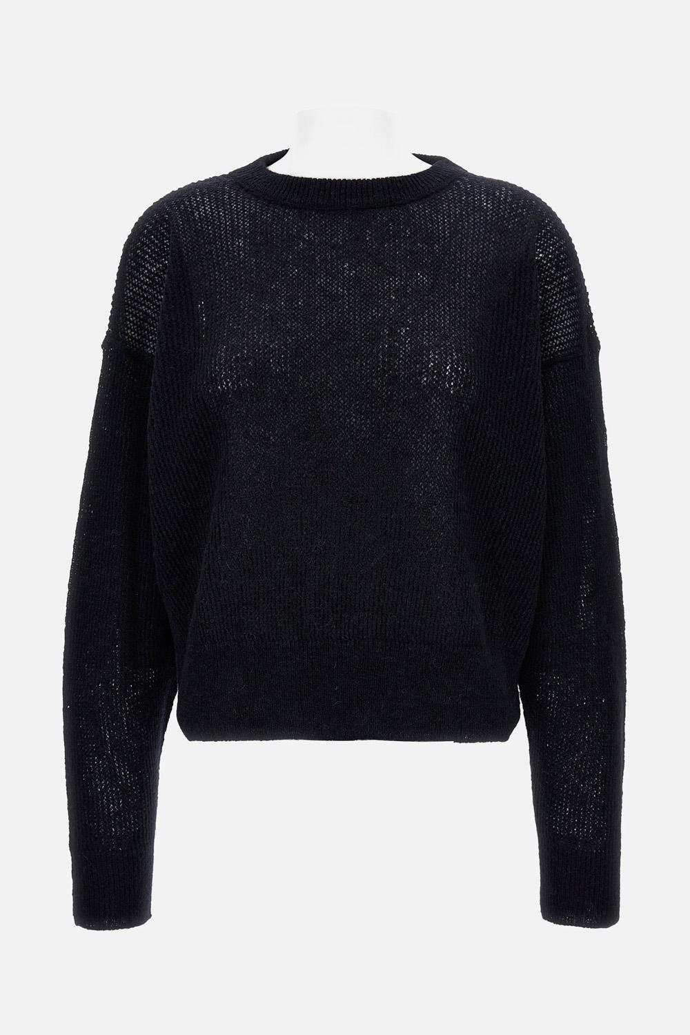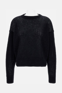 cropped openwork knit sweater with wide 'V' neckline. Made in Italy, black color Details and Care Color: Nero Composition: 49% WP 21% WO 30% PA Made in: Italia Sku: HEW07085MC066PXT0002