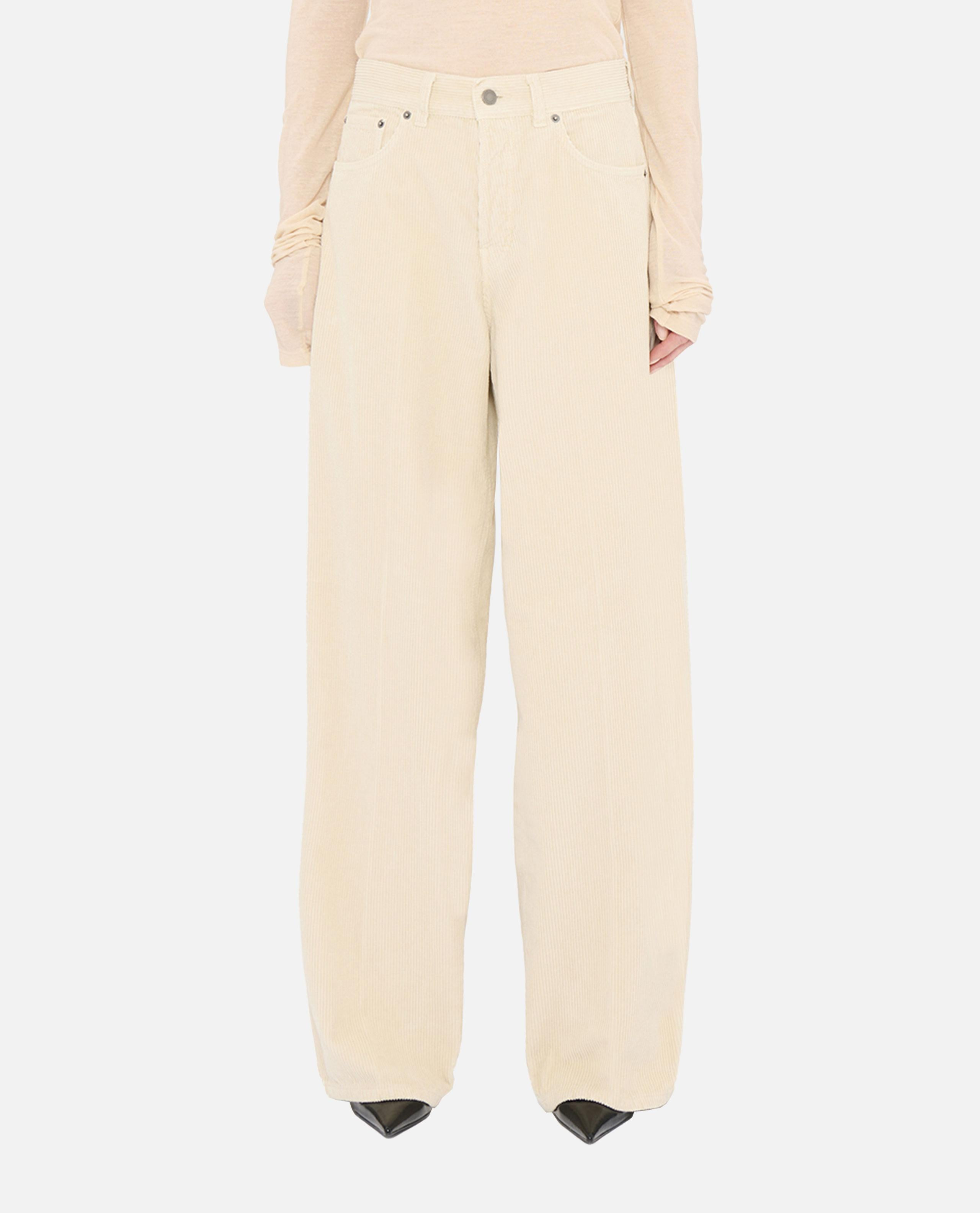 Women's ribbed cotton trousers, wide leg and classic 5-pocket closure. Regular fit. Made in Italy, color: beige Details and Care Color: White Composition: 100% CO Made in: Italia Sku: HEW03296GF156PTT0336