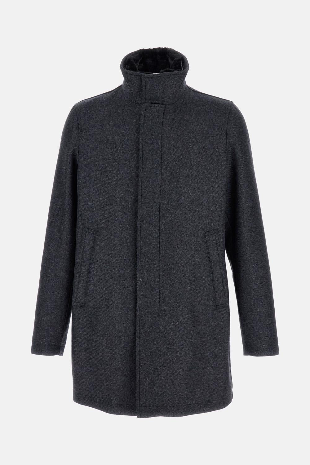 Straight coat. Welt pockets. Concealed zip closure. Color: grey Care and details Color: Grey Composition: 71% LANA 25% POLIAMMIDE 4% ALTRE FIBRE Made in: Italia Code: CA000214U33432R9490
