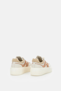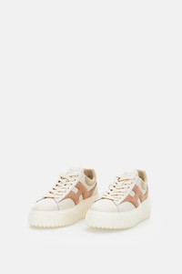 Nappa leather upper Lateral H The top edge, with stitching on the heel tab, features soft padding Extralight sole with vertical stripes Includes an extra pair of laces Beige color with contrasting details Made in Italy Details and Care Color: Beige Composition: 95% CALFSKIN 5% MUTTON LEATHER Made in: Italia Sku: HXW6450FE91UXI0FE4