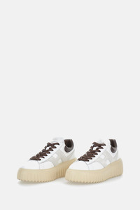 Leather sneaker, lateral 'H' detail and brown heel with thick laces. White color. Made in Italy Care and details Color: White Composition: 70% MUTTON 30% CALFSKIN Made in: Italia Code: HXW6450FE91UIT0BAZ