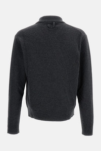 Wool blend cardigan with collar and diagonal button closure, featuring a small pocket on the front, with ribbed cuffs and hem, dark grey color, made in Italy. Details and Care Color: Grigio Composition: 89%WE 10%WS 1%EL Made in: Italia Sku: CDM00570AK00282970