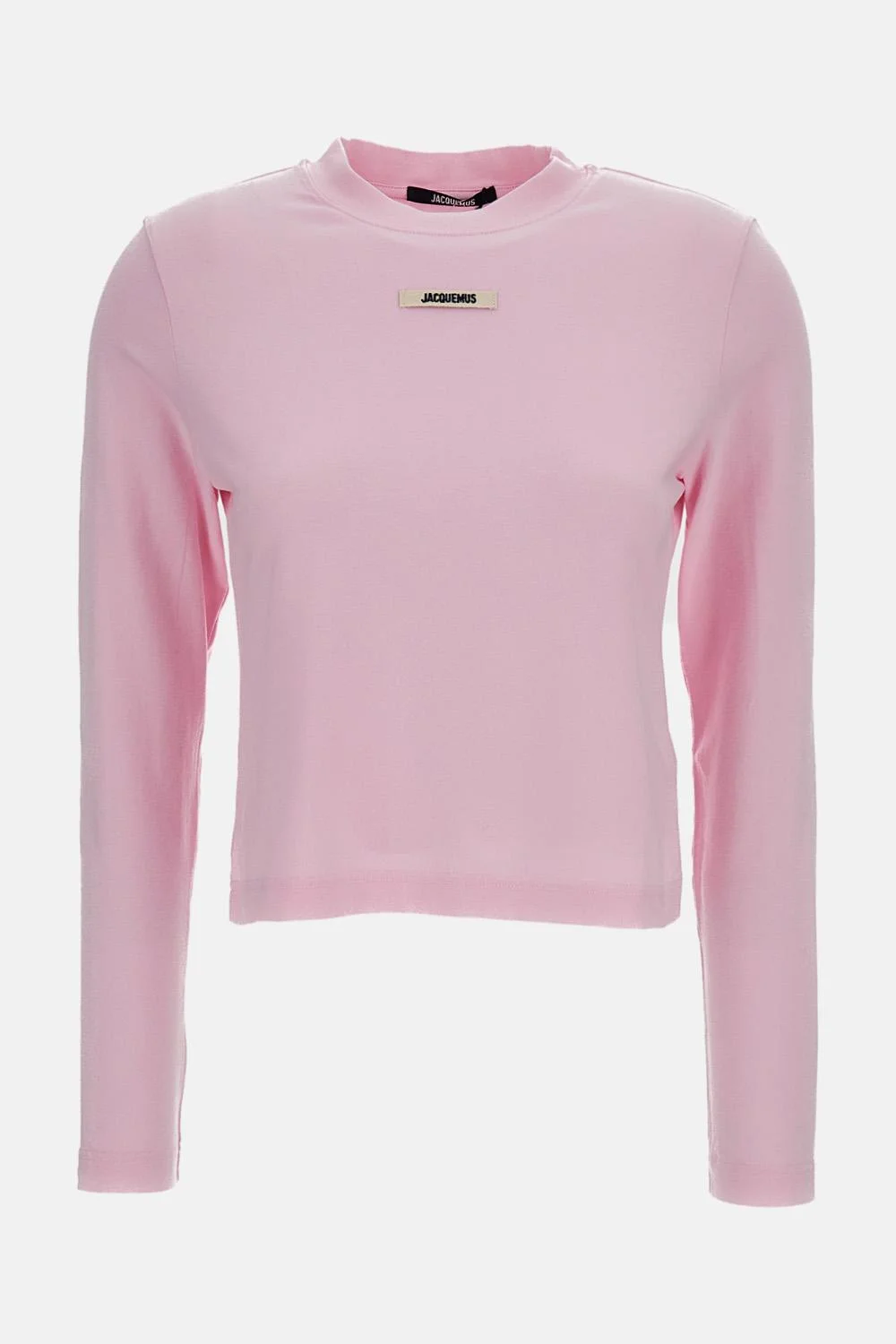 Long-sleeve T-shirt in stretch cotton Ribbed crew neck Cropped cut Embroidered grosgrain logo on the chest Color: pink Details and Care Color: Rosa Composition: 94% CO 6% EA Made in: Portogallo Sku: TSW00155AJ00124431