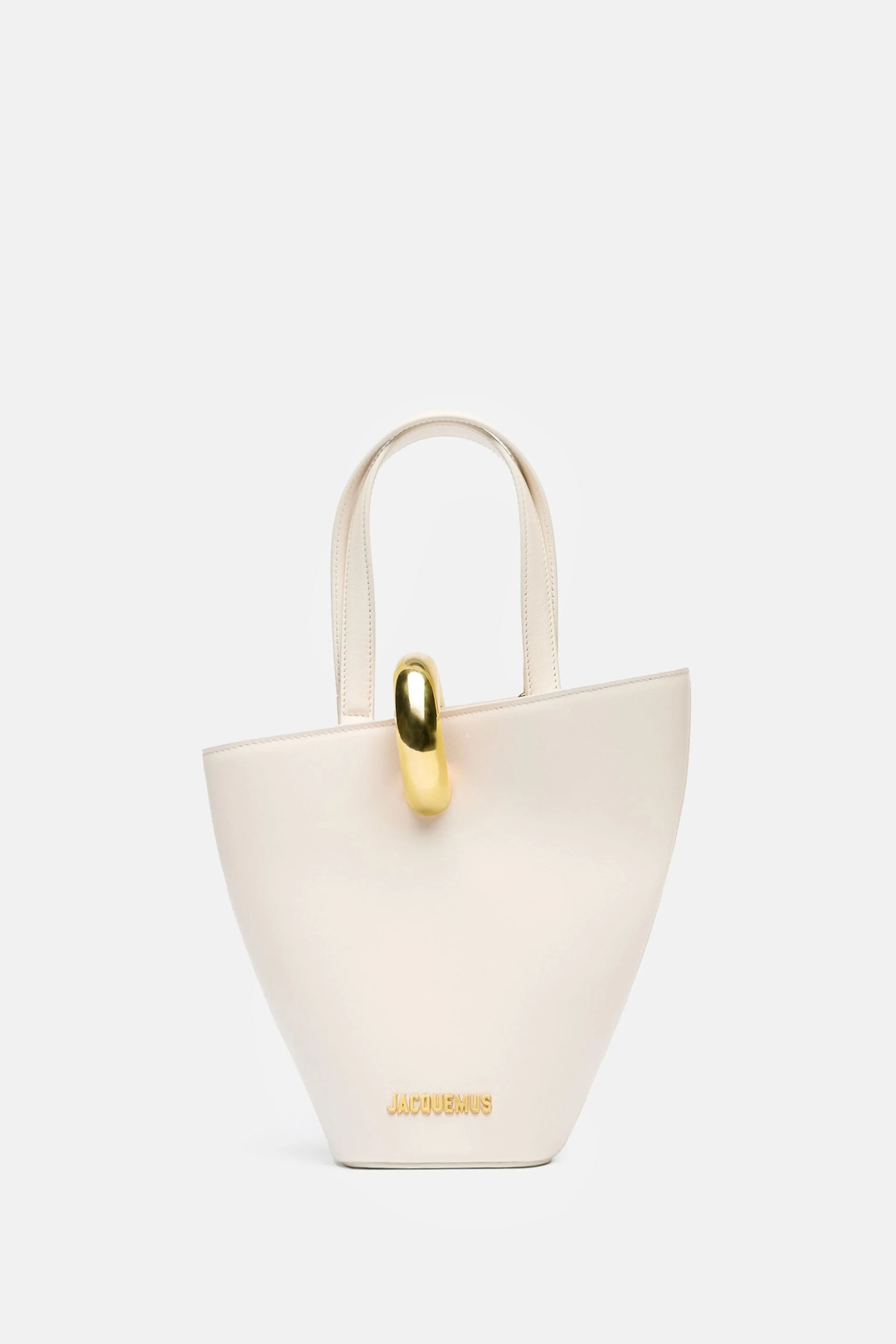 Asymmetric mini bucket bag in smooth leather Removable shoulder strap Gold-plated metal closure ring Double top handles Internal zip pocket Gold-plated finishes and logo Fully cotton-lined model White color Made in Italy Details and Care Color: Bianco Composition: 100% LEATHER Made in: Italia Sku: BAW00389AC01C01115 Size and Fit Altezza: 24 cm Lunghezza: 24 cm Larghezza: 10 cm