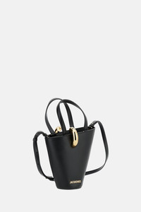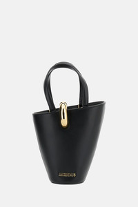Asymmetric mini bucket bag in smooth leather Removable shoulder strap Gold-plated metal closure ring Double top handles Internal zip pocket Topstitching Gold-plated finishes and logo Fully cotton-lined model Color BLACK Made in Italy Details and Care Color: Nero Composition: 100% COW LEATHER Made in: Italia Sku: BAW00389AC01C01990 Size and Fit Altezza: 24 cm Lunghezza: 24 cm Larghezza: 10 cm