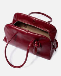 Bowling bag in patent cowhide leather. Double-zip closure. Internal zip pocket. Decorative front bow detail. Red color Details and Care Color: Rosso Composition: 100% COW LEATHER Made in: Italia Sku: BAU00417AC20C01490 Size and Fit Dimensioni: 39 × 21 × 17 cm