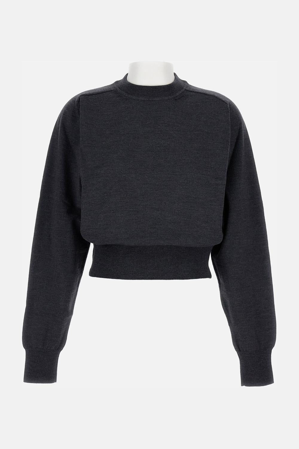Long-sleeve crewneck wool sweater, logo on the back, gray color Details and Care Color: Grigio Composition: 100% WO Made in: Portogallo Sku: SWW00632AK00299970
