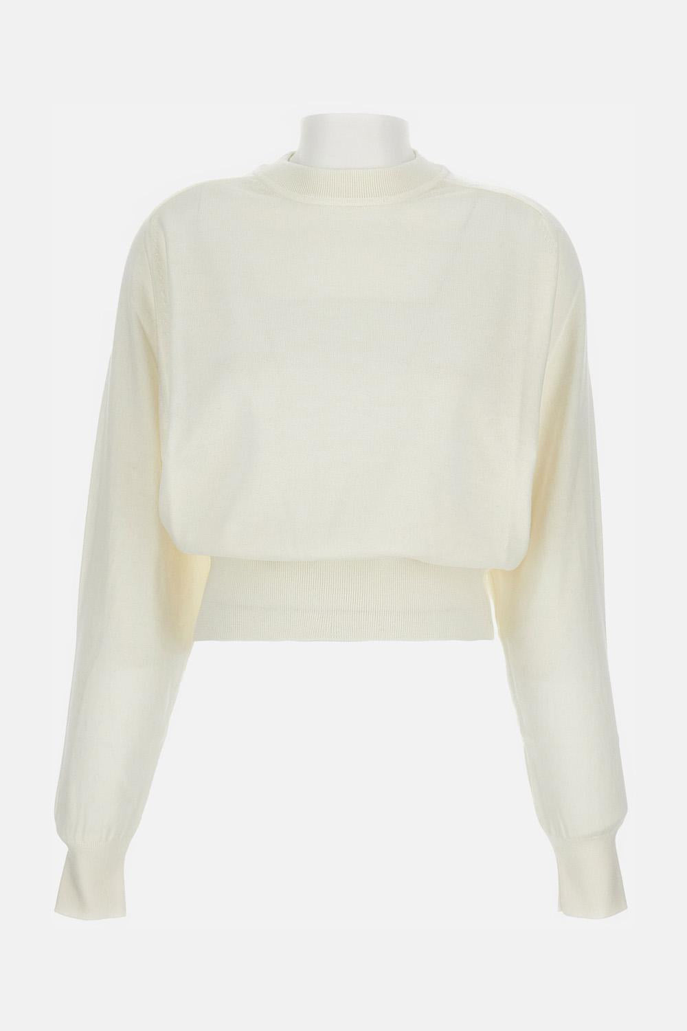 Long-sleeve crewneck sweater in wool, white color Details and Care Color: Bianco Composition: 96% WE.MERINO WOOL 4% PA.POLYAMIDE/NYLON Made in: Portogallo Sku: SWW00632AK00299110