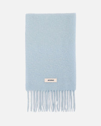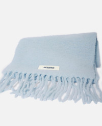 Long scarf in soft wool with jacquard weaving. Embroidered logo on applied gros-grain. Decorative 17 cm fringes on both ends. Measurements: 251 cm length × 40 cm width. Sky blue color. Details and Care Color: Viola Composition: 28% WM 28% WP 24% WO 20% PA Made in: Italia Sku: ACU00572BOT4032635