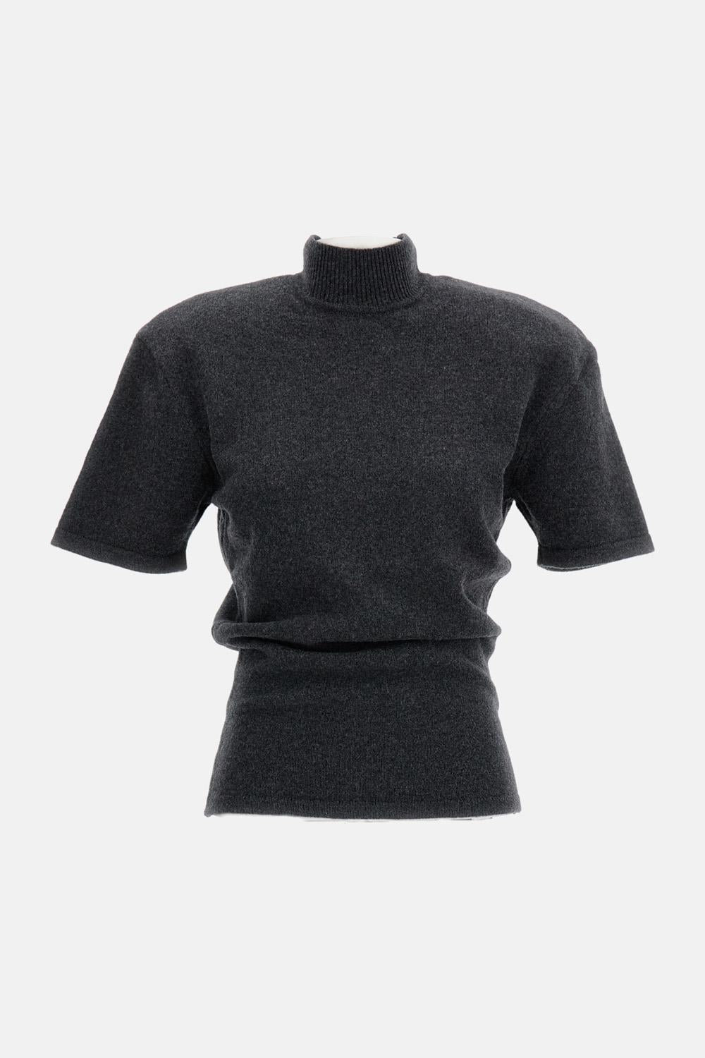 Knit strap top, with a fitted cut, in soft wool and cashmere. Ribbed turtleneck collar, rounded straps, 3/4 sleeves. "J" loop on the back, grey color. Details and Care Color: Grigio Composition: 89% WO 10% WS 1% PA Made in: Portogallo Sku: SWW00629AK00282970