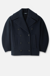 Double-breasted coat with contrasting buttons. Oval cut, side pockets, and collar. Oversized fit. Navy blue color. Details and Care Color: Blu Composition: 100% WOV.x laine vierge Made in: Bulgaria Sku: COW00103AW00429390