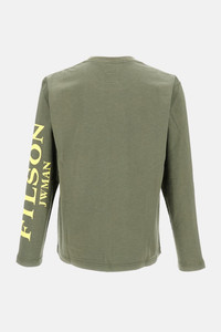T-shirt made in collaboration with Filson. 100% cotton, crew neck with long sleeves. Graphic detail on the left sleeve in fluorescent yellow. Olive green color. Details and Care Color: Verde Composition: 100% CO Made in: Giappone Sku: WPT0080512