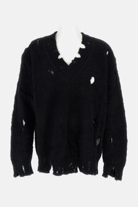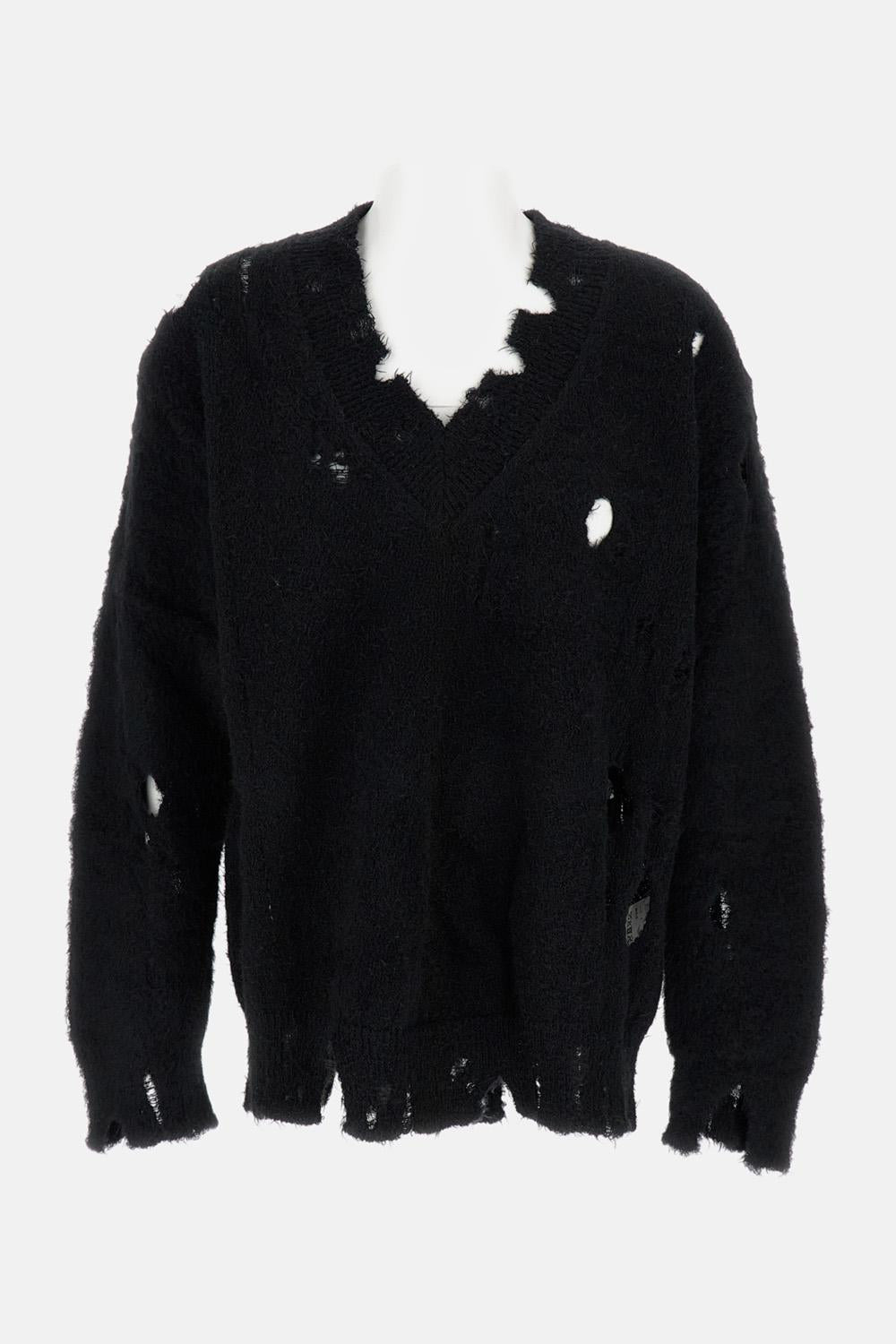 Wool Blend Sweater with Worn Effect Color: Black Sleeves: Long Neckline: Raw V-neck Hem and cuffs: Raw edges, raw effect Fit: relaxed Details and Care Color: Nero Composition: 86% WO 14% PL Made in: Giappone Sku: JPN0080511