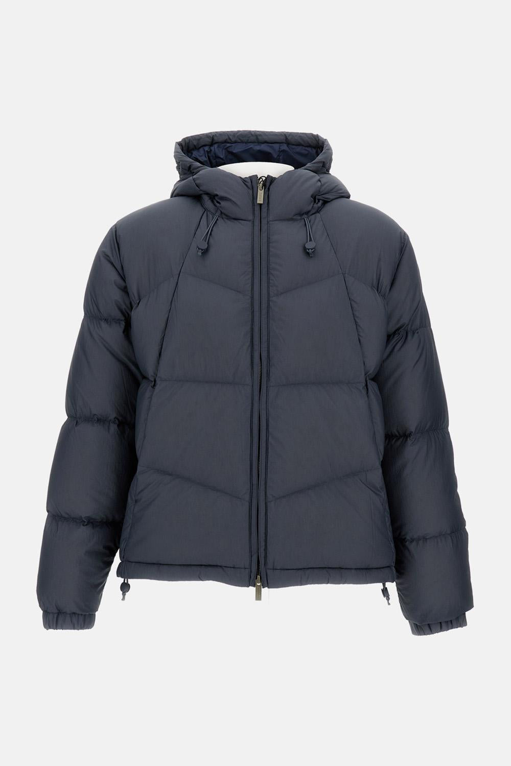 Short quilted jacket with an essential design, ideal for winter. Soft nylon fabric with a silky effect. High warmth down padding. Light and airy quilting. Adjustable hood and waist. Side pockets. Details and Care Color: Blu Composition: 100% NY Made in: Vietnam Sku: K7136GWB2I