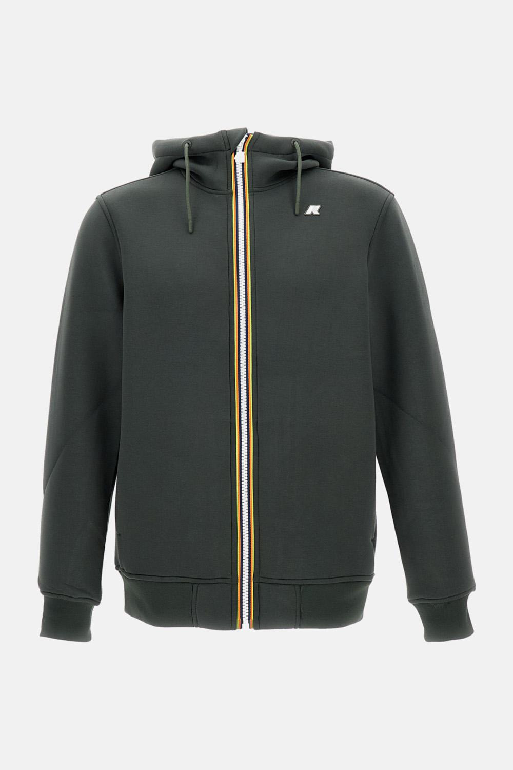 Man's jacket in lightweight scuba with a regular fit, finished with sporty details. Matte thick interlock fabric, adjustable hood, and zip closure. Ribbed cuffs and hem, side pockets, regular fitting. White silicone logo, green color. Details and Care Color: Verde Composition: 79% PL 9% EA Made in: Cina Sku: K2141DWWMR