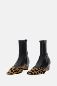 Nevada leather and leopard-print calf hair ankle boots Black