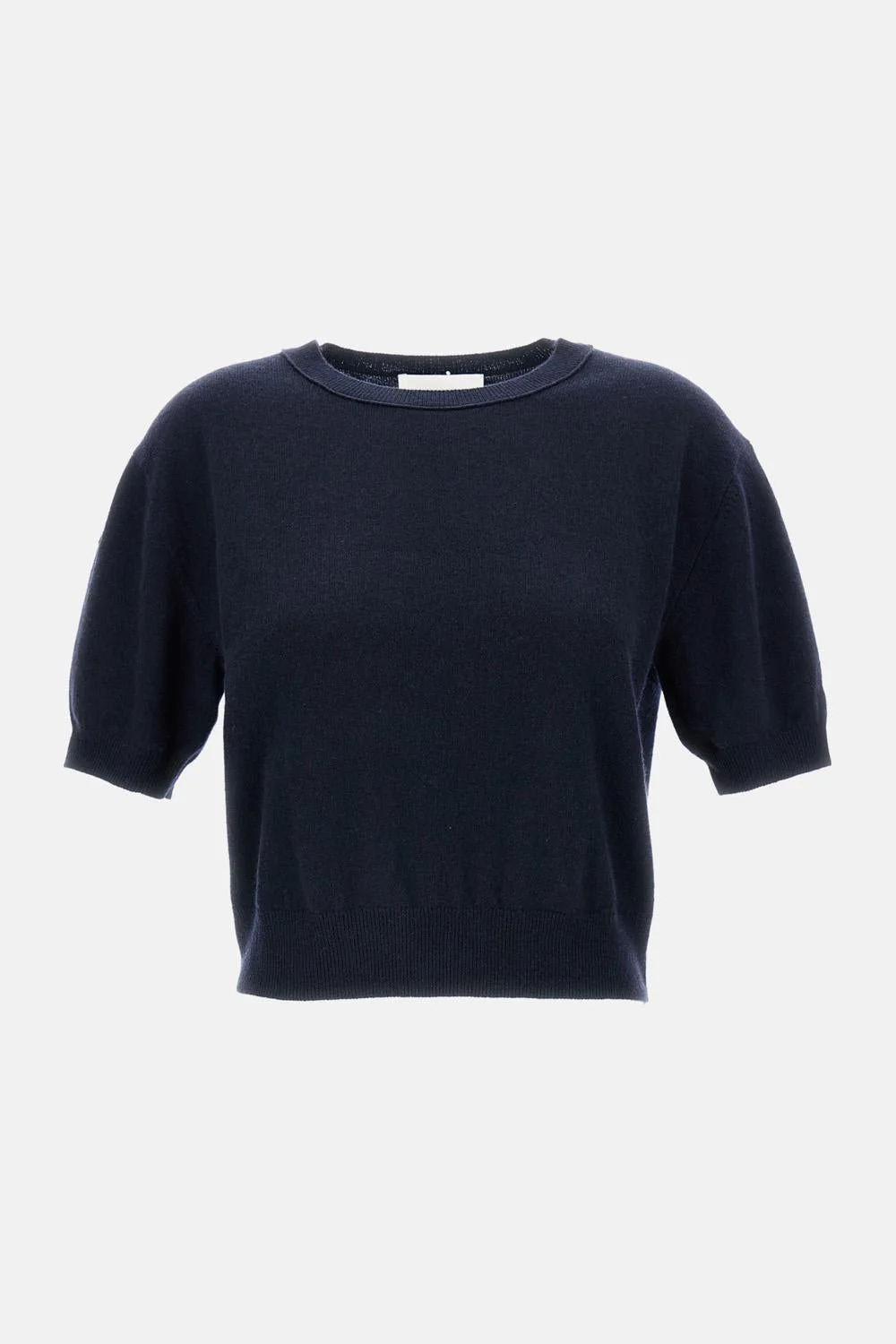 Wool sweater 100% virgin wool Round neck Ribbed trims 3/4 sleeves Details and Care Color: Blu Composition: 100% WS Made in: Cina Sku: 2026311JN