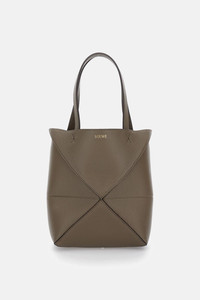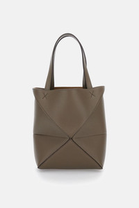 Mini Puzzle foldable tote bag in gray. Iconic shape with adjustable tonal leather shoulder strap and top handle. Suede lining, gold-printed logo. Care and details Color: Grey Composition: 100% CALF LEATHER Made in: Spagna Code: A779V25X193170