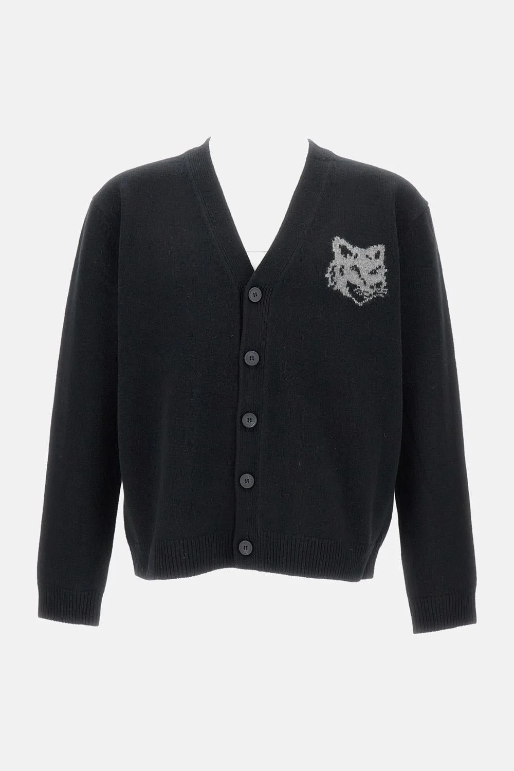 Black, with fox head inlay, V-neckline, button closure, and long sleeves. Details and Care Color: Nero Composition: 100% WO Made in: Cina Sku: PM00509KM03290391
