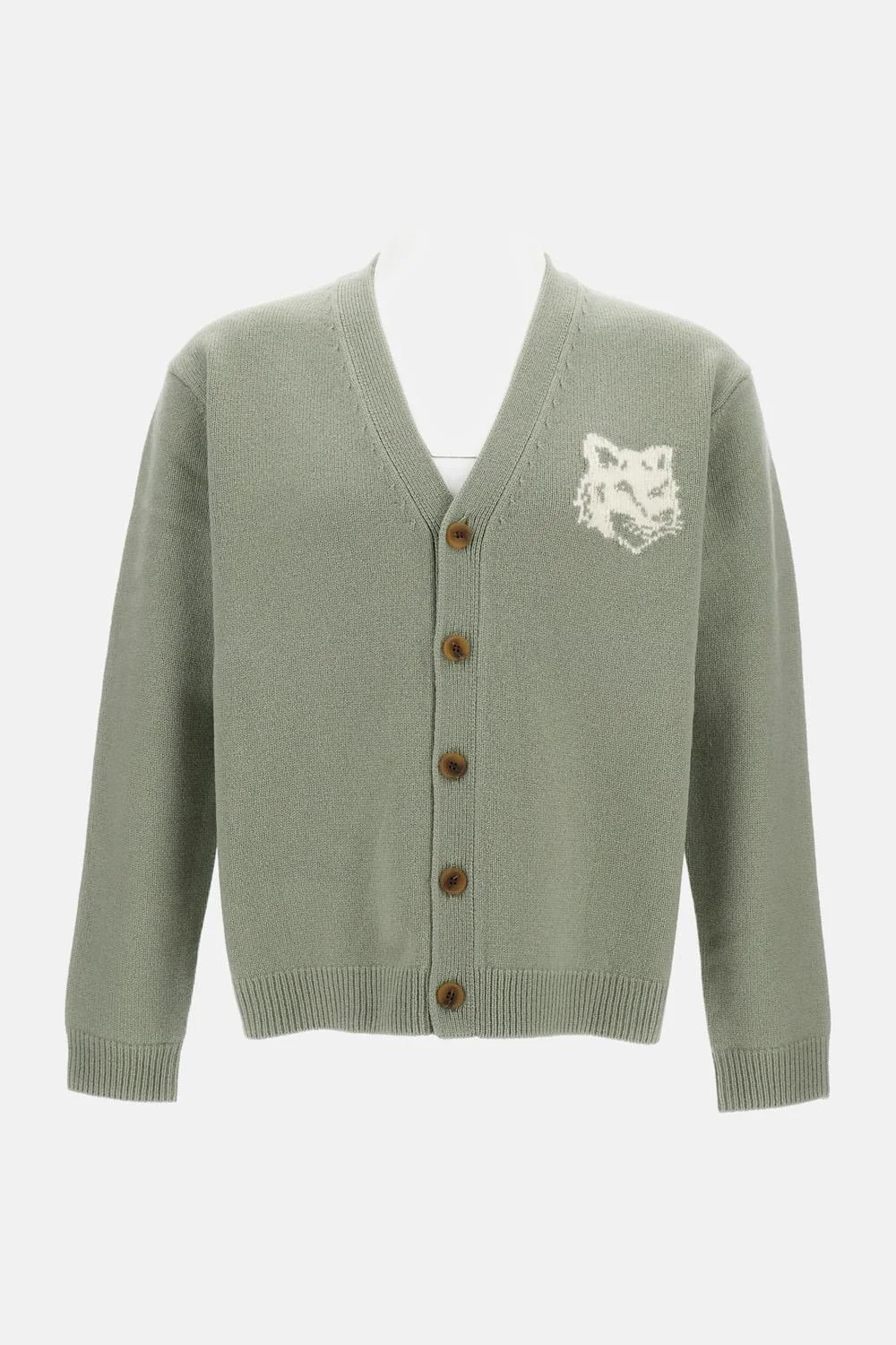 FOX HEAD INTARSIA MERINO CARDIGAN