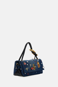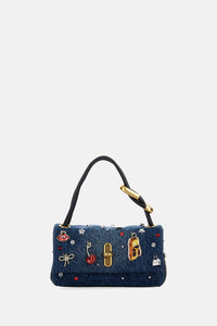 Shoulder bag with adjustable handle Charm detail on flap and embroidered rhinestones Internal zip pocket Snap closure Blue denim Details and Care Color: Blue Composition: 98% CO 2% PL Made in: Vietnam Sku: 2R5HSC022H02454