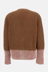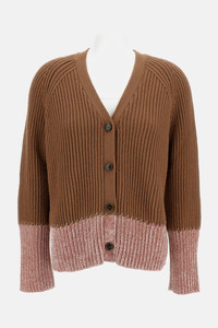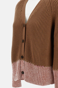 BROWN WOOL COLOR-BLOCK CARDIGAN