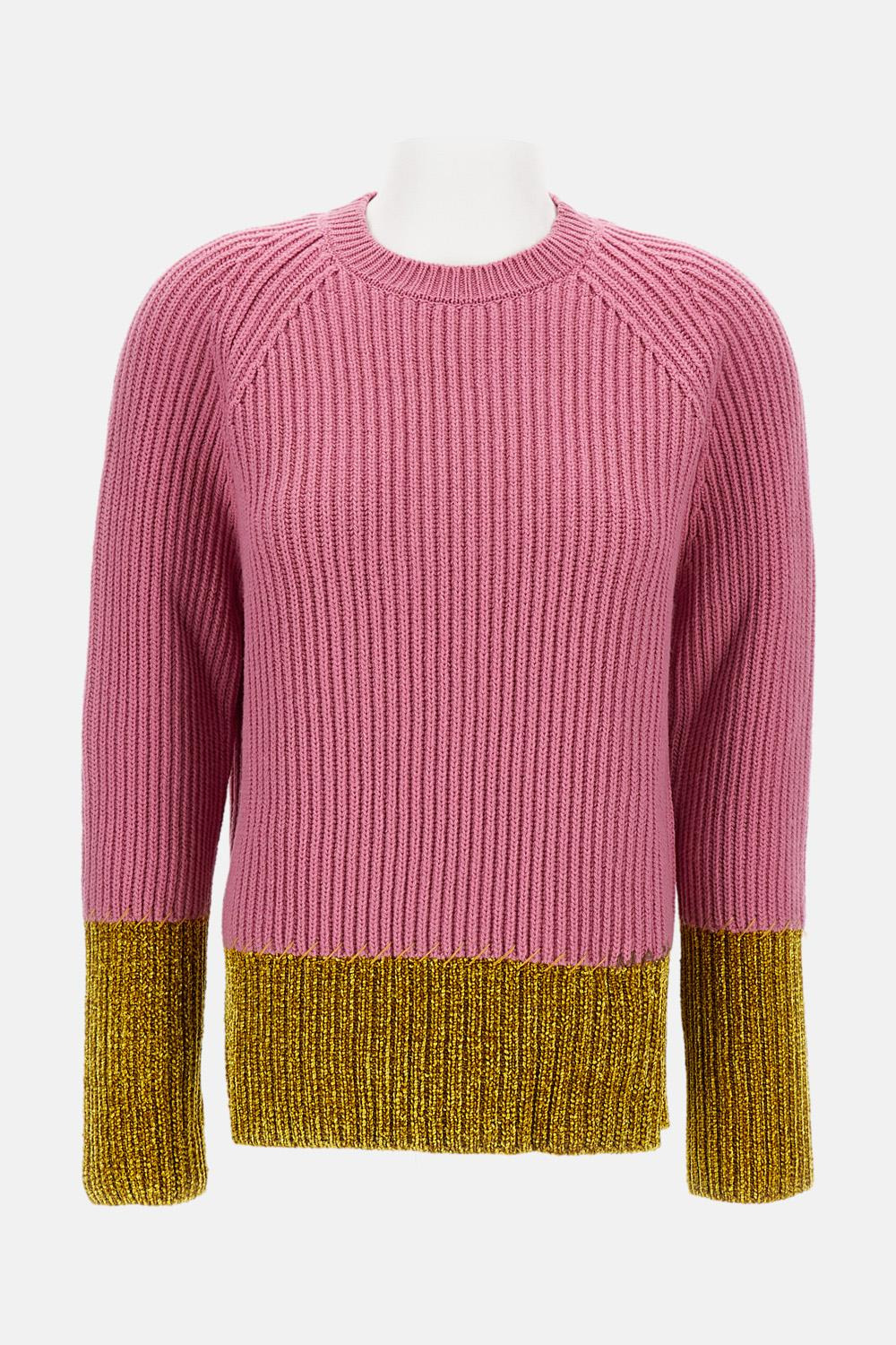 Sweater made in Italy in wool with a crew neck. Visible seam details with cotton thread and logo, colors pink and mustard. Details and Care Color: Rosa Composition: 100% WO Made in: Italia Sku: GCMD0632Q0UFH553BIC33