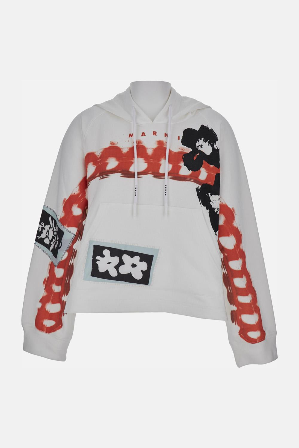Printed hoodie, front pocket, ribbed, oversized fit, made in Italy, white Care and details Color: White Composition: 100% CO Made in: Italia Code: FLJE0233P0USCY40PRW01