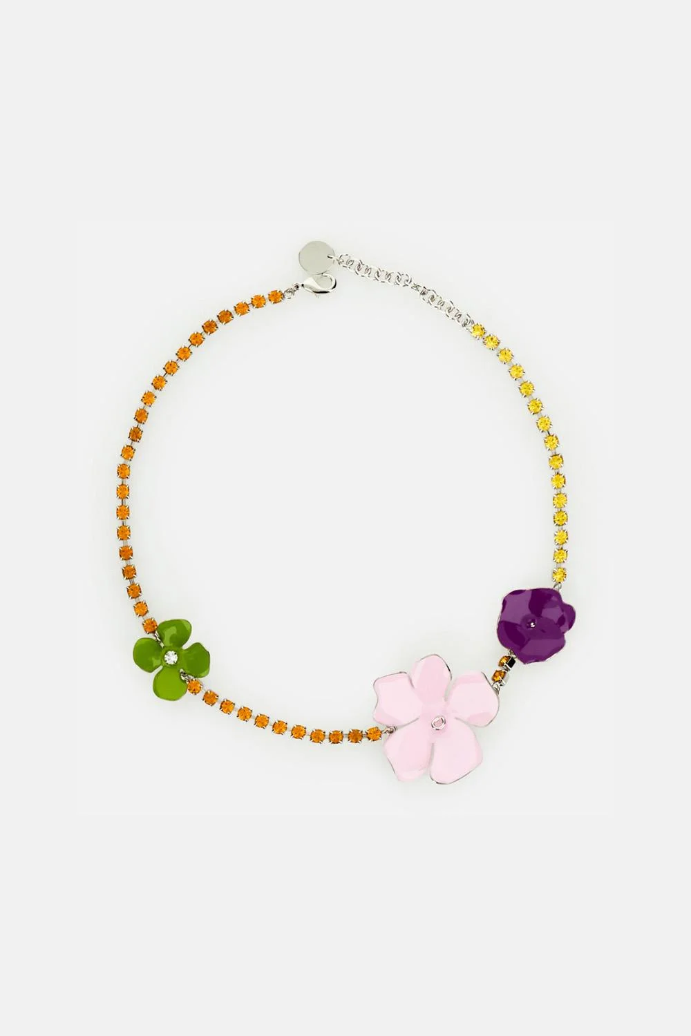 PINK ENAMEL FLOWER RHINESTONE NECKLACE