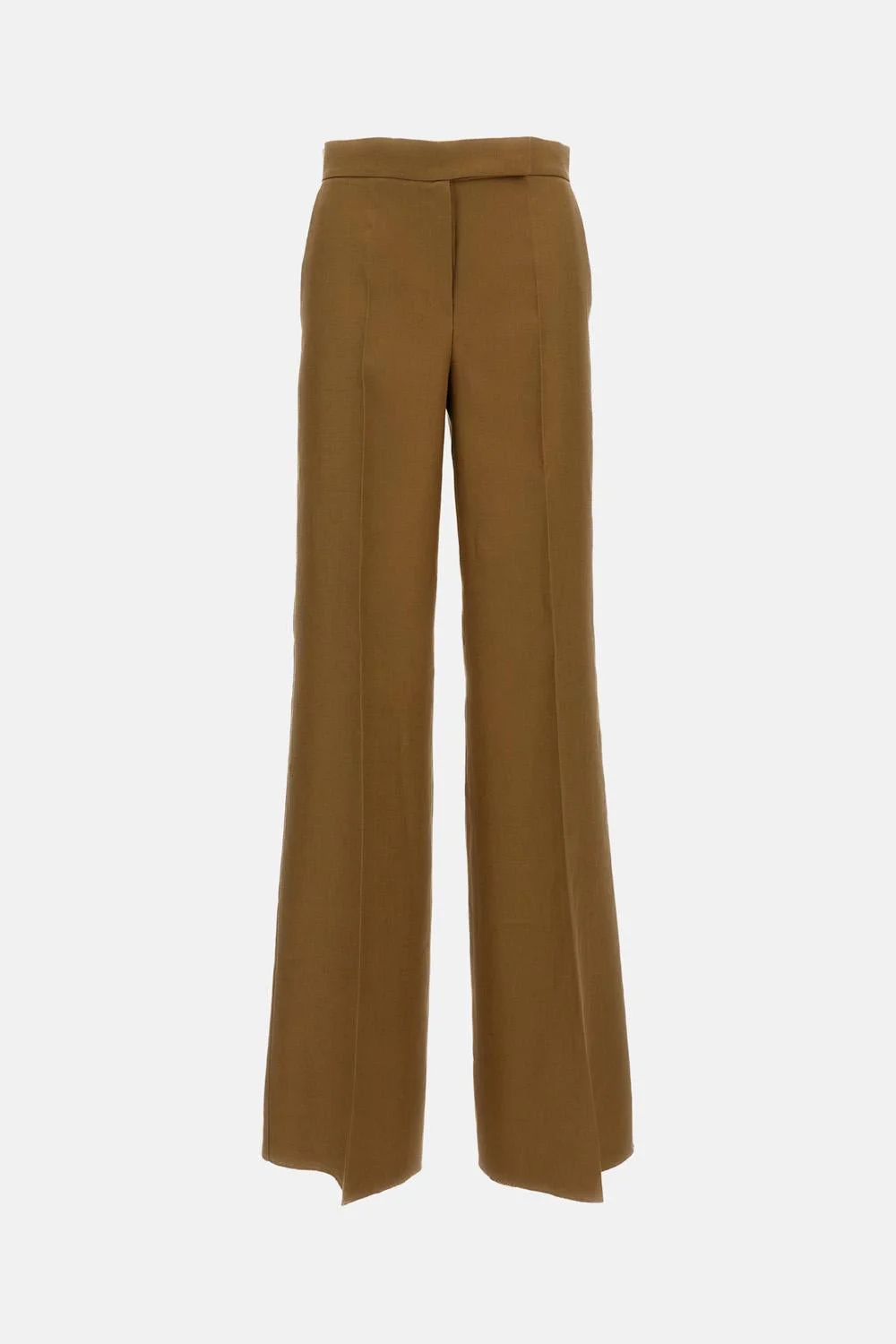 High-waisted wide-leg trousers in linen Front fastening with zip and hooks Side French pockets Comfortable fit Pressed crease Colour: brown Made in Italy Details and Care Color: Marrone Composition: 100% LI Made in: Italia Sku: 2611131022600007