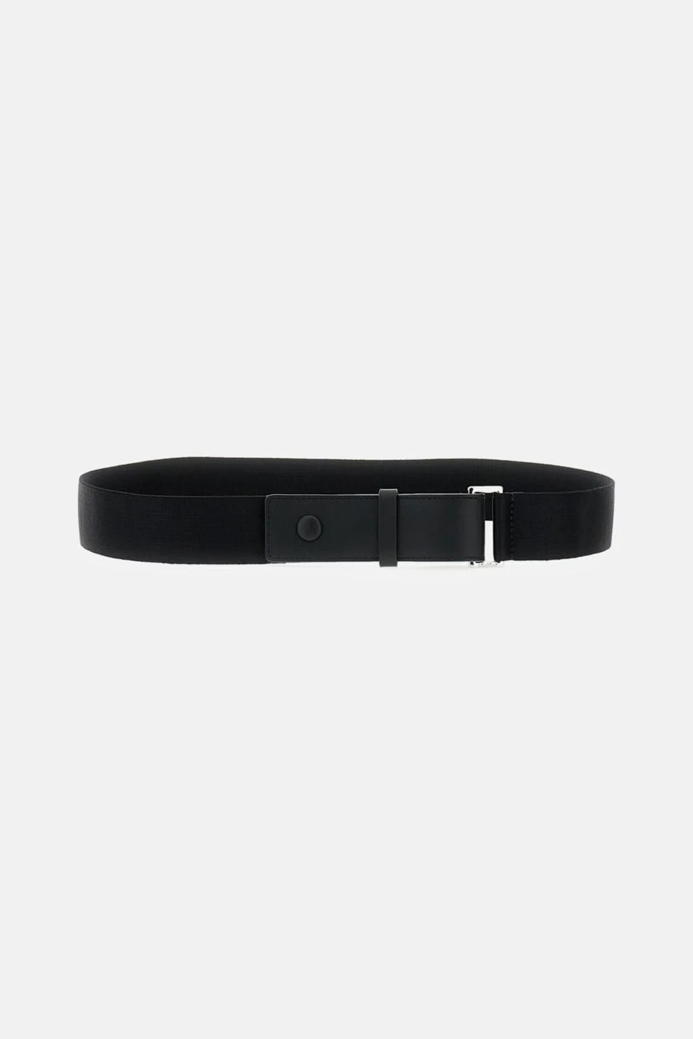 Elastic ribbon belt finished with leather details Snap button closure Silver-tone metal buckle Color: black Made in Italy Details and Care Color: Nero Composition: 49% VI 26% CI 14% RUBBER 11% PL Made in: Italia Sku: 2614501013600001