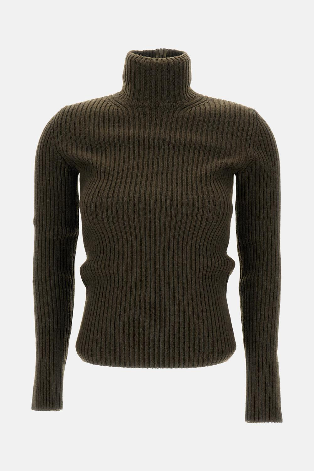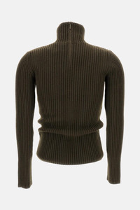 Turtleneck in stretch wool and cashmere yarn Slim fit with high neck and long sleeves. Half zip on the back of the neck with personalized enamelled slider Details and Care Color: Verde Composition: 62% WO 27% WS 10% PA 1% EA Made in: Romania Sku: 2521366293600006