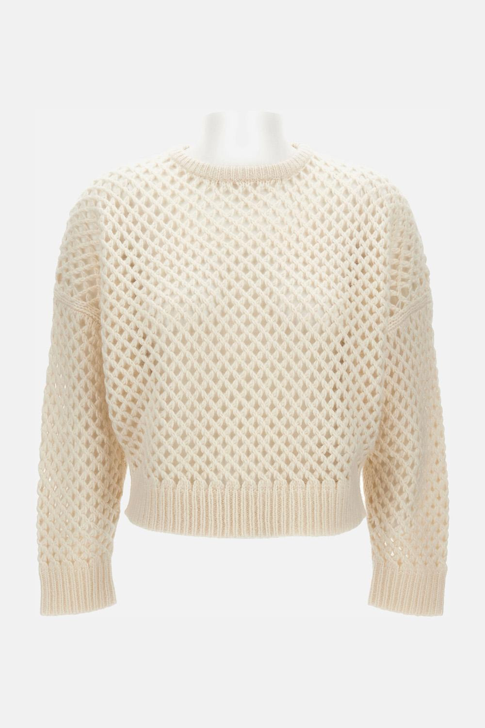 Long-sleeve openwork cashmere sweater with ribbing at waist and cuffs. Crew neck, oversized fit, white color Details and Care Color: Bianco Composition: 75% WS 25% SE Made in: Cina Sku: 2521366142600001