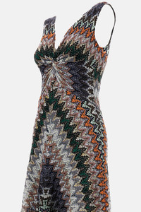 Long dress with knotted neckline Fabric crafted from lame viscose, in zigzag lace Sleeveless Fully lined Multicoloured Made in Italy Details and Care Color: Multicolore Composition: 52%VI 39%CO 9%ME Made in: Italia Sku: DS26SG1SBR014ZS72OW