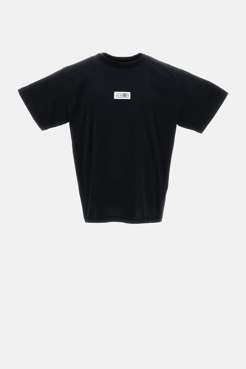 Black cotton jersey T-shirt Front patch Numeric Signature MM6 Classic crew neck and iconic White Stitch Line on the back Regular fit (true to size) 100% cotton, Made in Italy Details and Care Color: Nero Composition: 100% COTONE Made in: Italia Sku: SH0GC0032M20170900