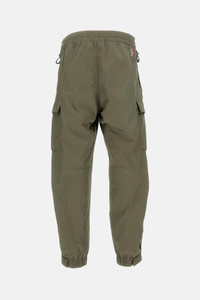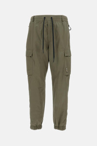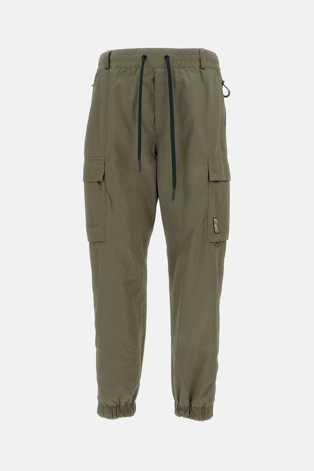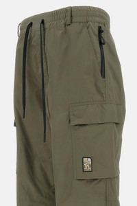 Technical cargo-style trousers. Elastic waistband with adjustable drawstring and belt loops. Elastic cuffs at ankles, large pockets, and side pockets. Logo detail. Green color Details and Care Color: Verde Composition: 100% PL Made in: Bulgaria Sku: 2A000015988K823