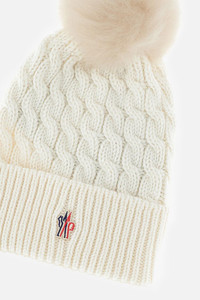 Wool hat with braided and ribbed pattern, embroidered logo, and pom pom. White color Details and Care Color: Bianco Composition: 100% WO Made in: Italia Sku: 3B000120402A034
