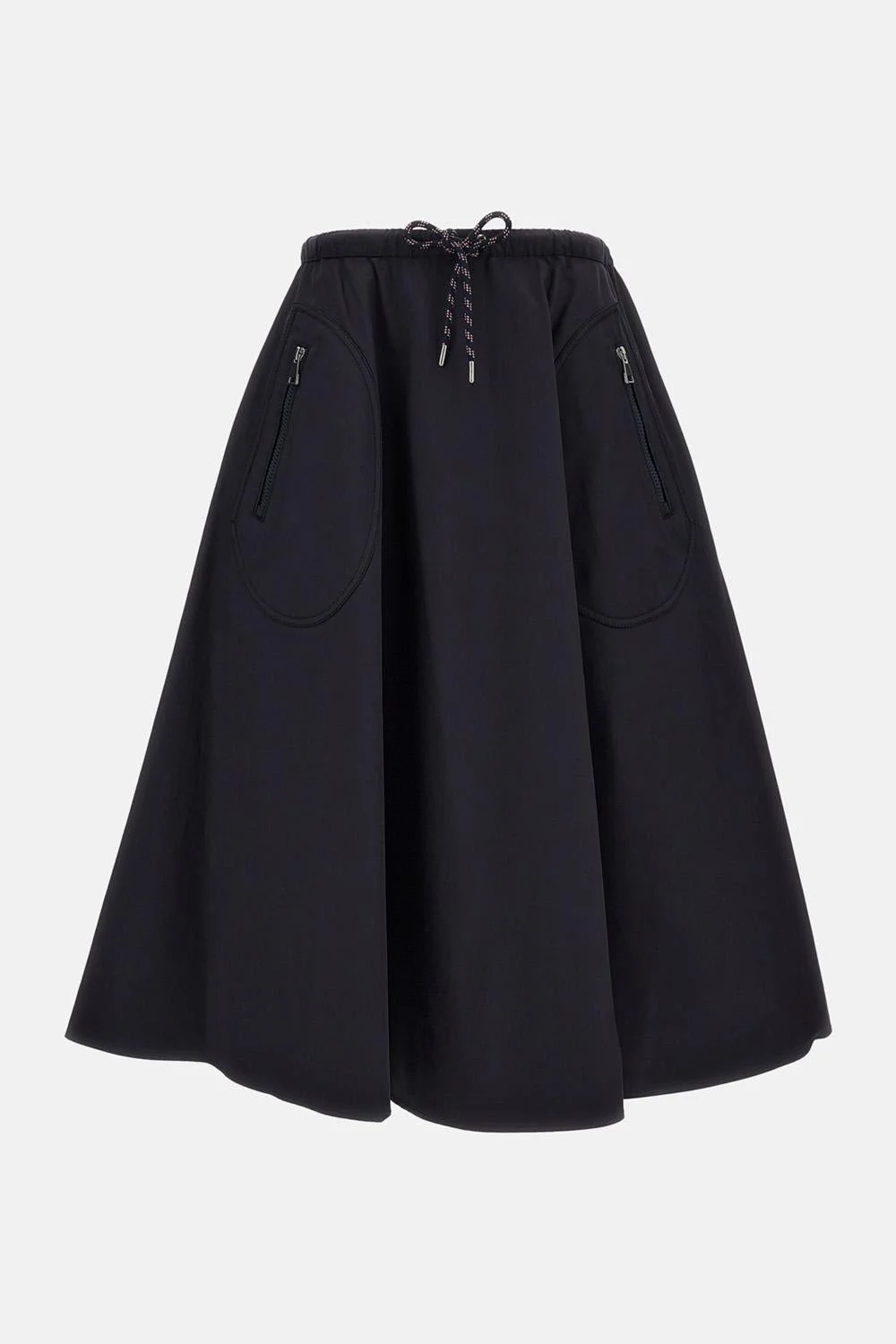 Midi skirt made of a cotton and nylon blend. Waist with drawstring. Pockets with zipper. Trapeze silhouette Colour: blue Details and Care Color: Blu Composition: 36% PA 64% CO Made in: Romania Sku: 2D0001354ARP742
