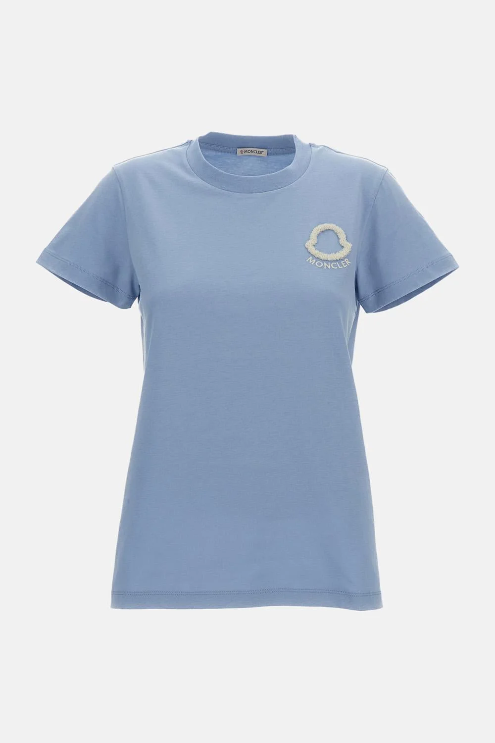 Short-sleeved crewneck T-shirt in cotton Relaxed fit Ribbed-trim collar Raised and embroidered logo on the front Color: light blue Details and Care Color: Azzurro Composition: 100% CO Made in: Turchia Sku: 8C0006189AUO700