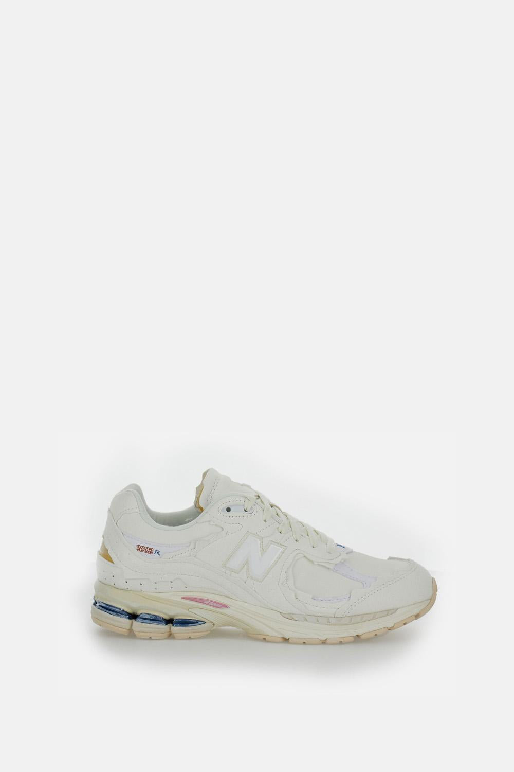 Deconstructed sneakers with raw-cut suede leather. Premium leather base with leather details on collar and heel. ABZORB midsole for advanced cushioning. N-ergy outsole with high shock absorption capacity. Exposed foam tongue and New Balance branding. White color with multicolor details. Details and Care Color: Bianco Composition: SUEDE / TEXTILE Made in: Vietnam Sku: M2002RDCWHITE