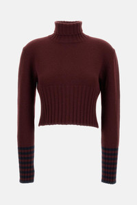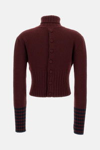 Cardigan in 100% wool Ribbed finishes Cropped model Button detail on the back Burgundy color Details and Care Color: Red Composition: 100% WO Made in: Italia Sku: DVCME53GK0FW013Z3216