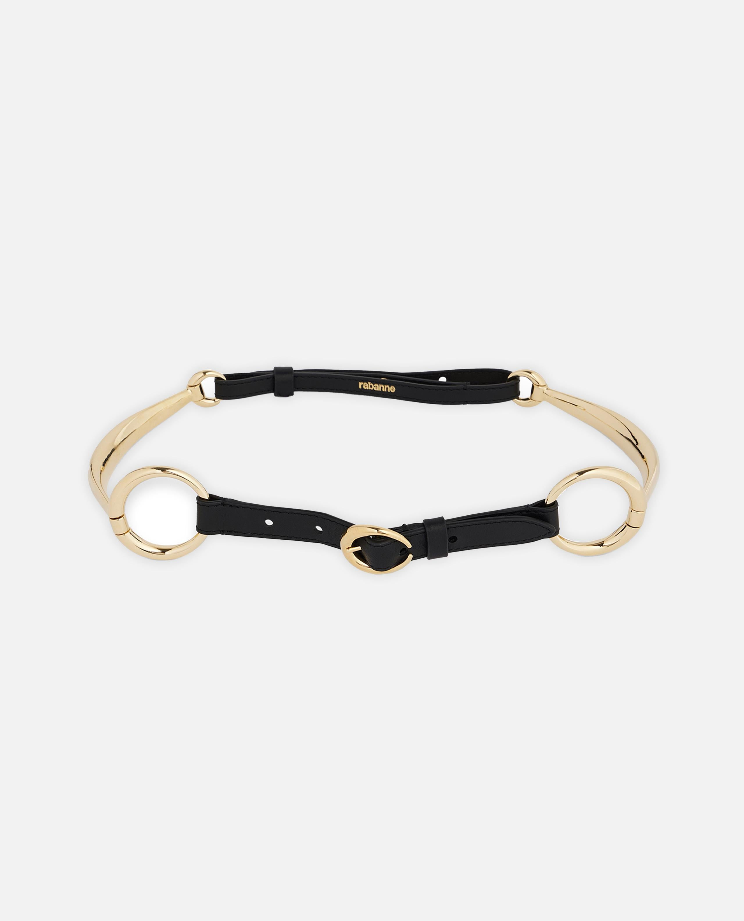 Leather belt with metallic gold details. Color: black Details and Care Color: Nero Composition: LEATHER / BRASS Made in: Italia Sku: 25HAA0251CLF261M027