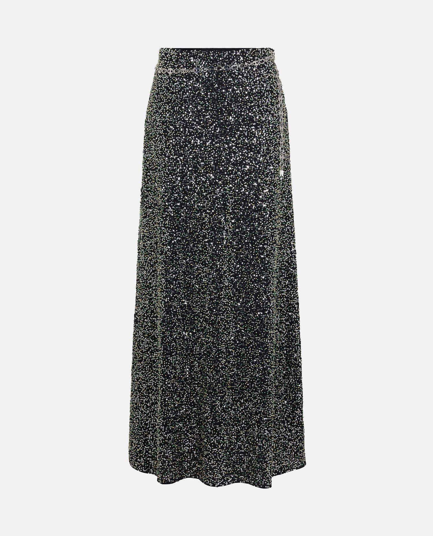 MIDI SKIRT IN CREPE WITH SEQUIN EMBROIDERY DETAILS