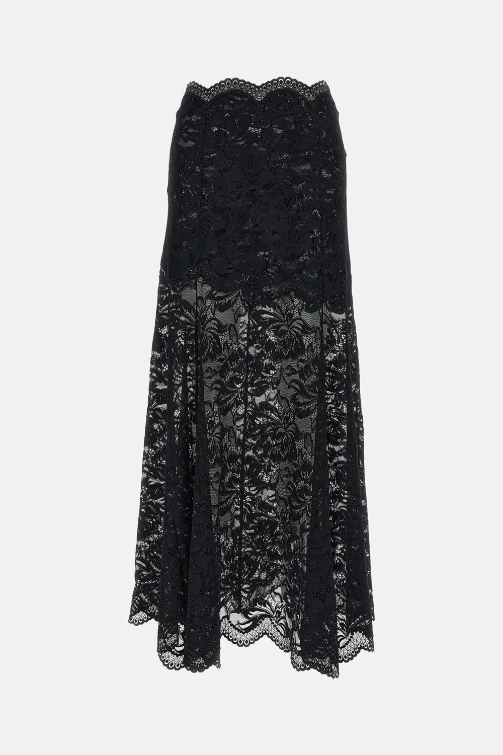 Midi skirt in stretch fabric All-black design with iconic Rabanne lace pattern Ankle-length Scalloped edges Regular fit Back zipper closure Details and Care Color: Nero Composition: 90% PA 10% EA Made in: Polonia Sku: 26PJJU131PA0170P001