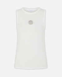 Sleeveless top. Round neckline. Metallic detail with logo. Color: white Details and Care Color: Bianco Composition: 3% EA 97% CO Made in: Tunisia Sku: 25HJTE027CO0530P100